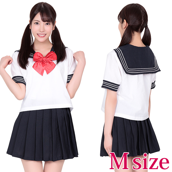 紺、白、赤の、制服定番カラーで、使いやすいコスチュームです!赤いリボンが私の目印!