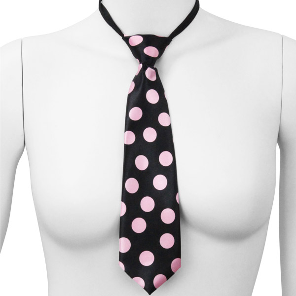 大きめドットが弾けて可愛さたっぷり!着脱ラクラクなファスナー式の簡易装着タイプのネクタイです。