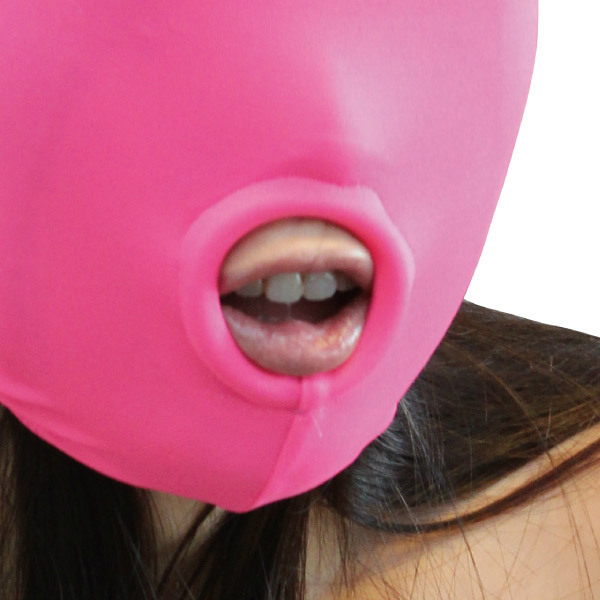 視覚を奪いつつイラマチオ責め!口元にシリコンリングを内蔵した、口開きのフェイスマスク(ピンク)。
