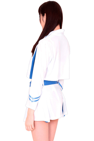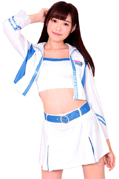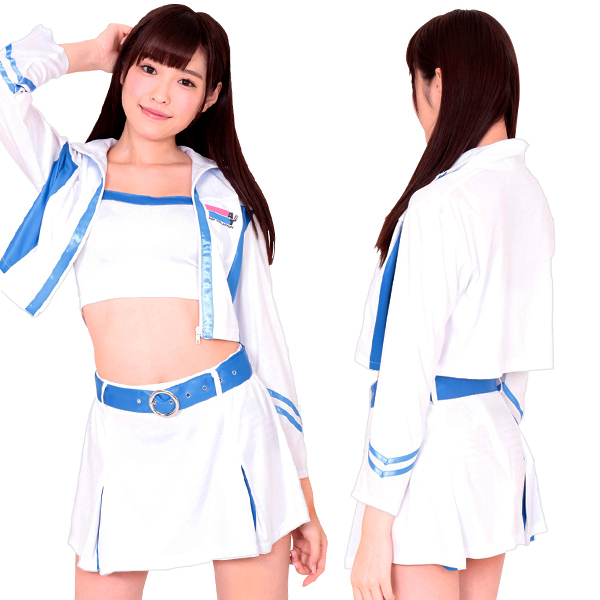 !白×水色の色使いが爽やかな印象を与える、レースクイーンコスチューム。
