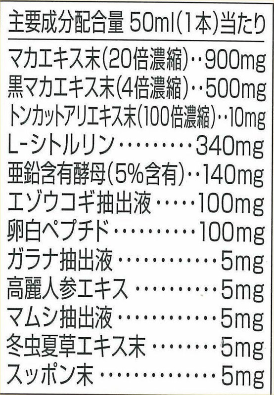 主要成分はマカ・黒マカエキス末やL-シトルリン等。