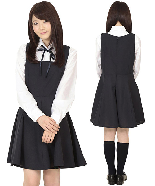 長めのスカートがポイント!清楚な印象を与える、お嬢様系制服コスチューム。