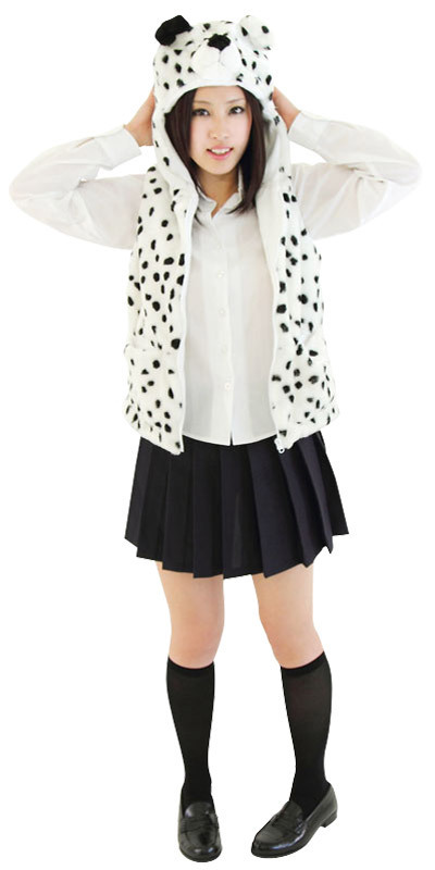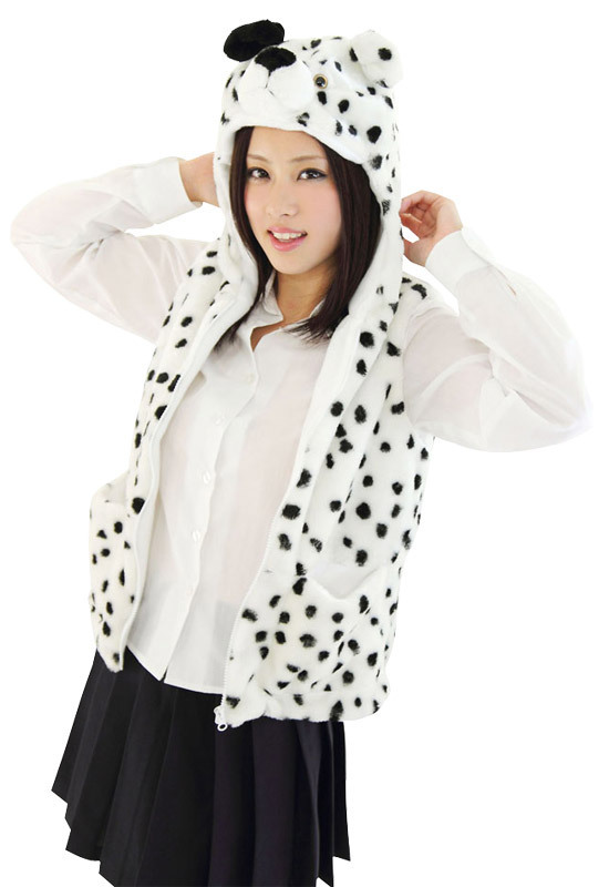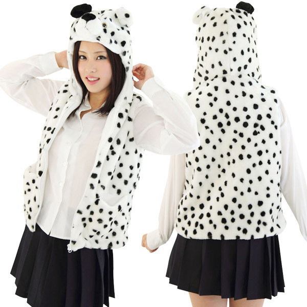 白×ランダムな黒点がCOOL!チーターの毛皮プリントがワイルドな着ぐるみベスト。