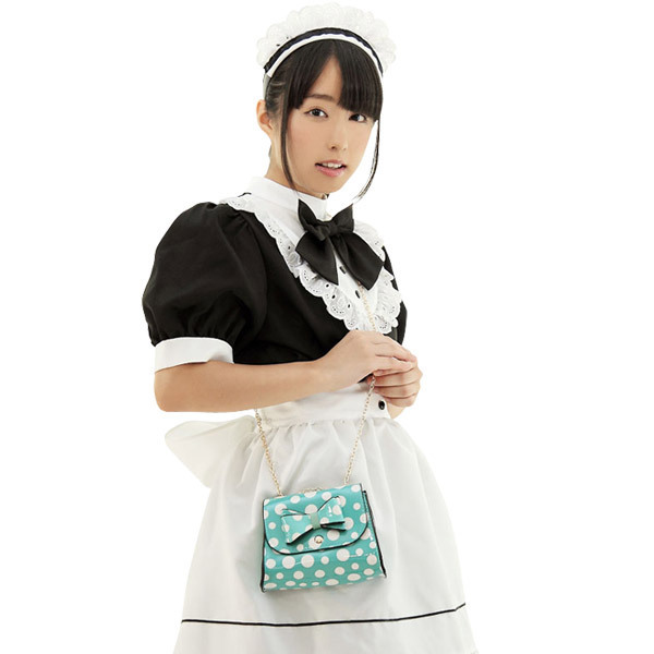 ●はじけるシュワシュワ感・ソーダみたいな水玉プリント●フラップにリボンを飾って存在感をプラス●可愛く斜めがけ・華奢な金色チェーン。