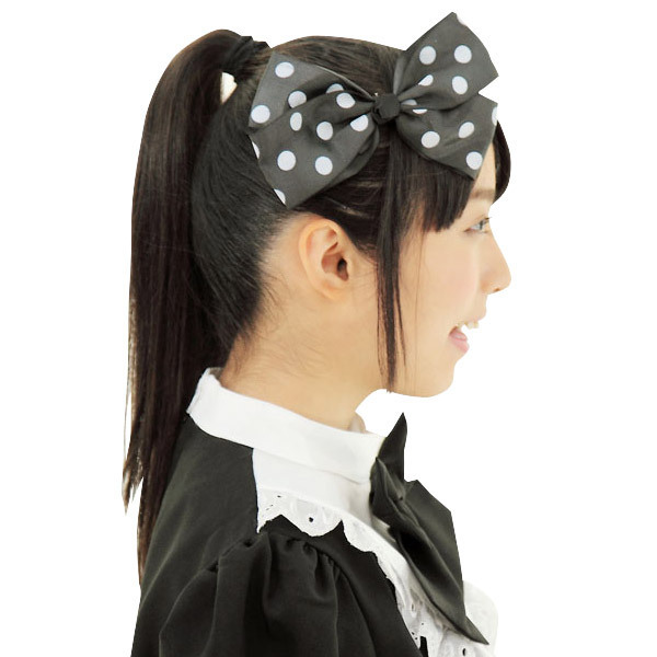 ●黒×白のドット柄リボン●装着簡単なクリップタイプ●私服にもコスプレにも相性◎。