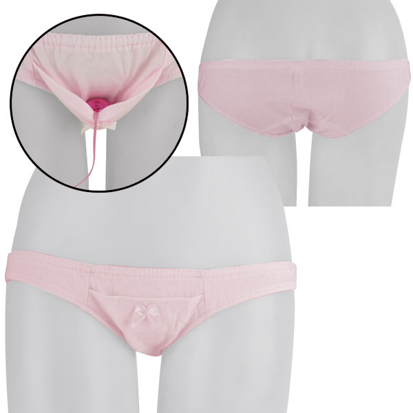 可愛らしいフロントポケットにローターをIN♪ポケット付きのフルバックコットンショーツ。