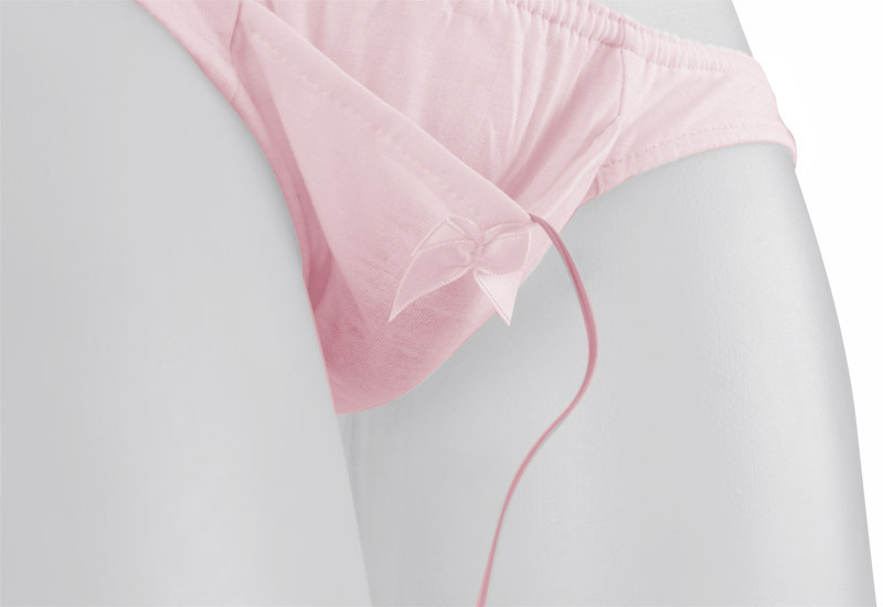 ●胸キュンピンクカラー●コットン100%の優しい肌触り●浅履きのローライズタイプ●ミニローター用のポケット付き●ちょこんと可愛いリボンがポイント●日本製・Mサイズ。