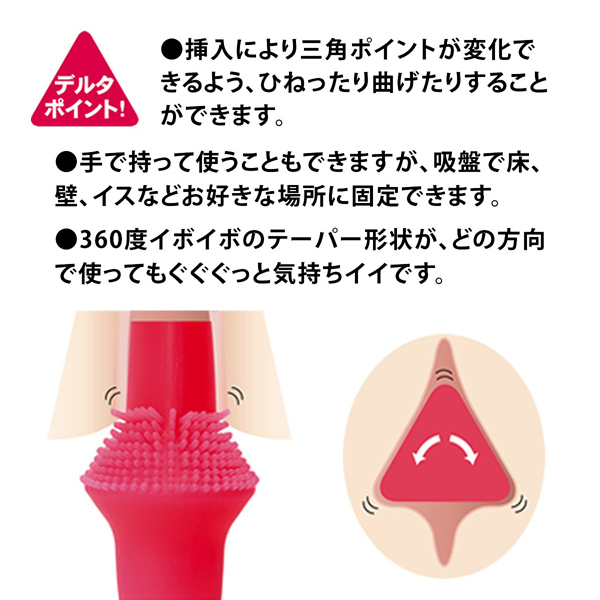 曲げたりひねったり自由自在に形を変えられる!三角刺激が新感覚な吸盤付きディルド。