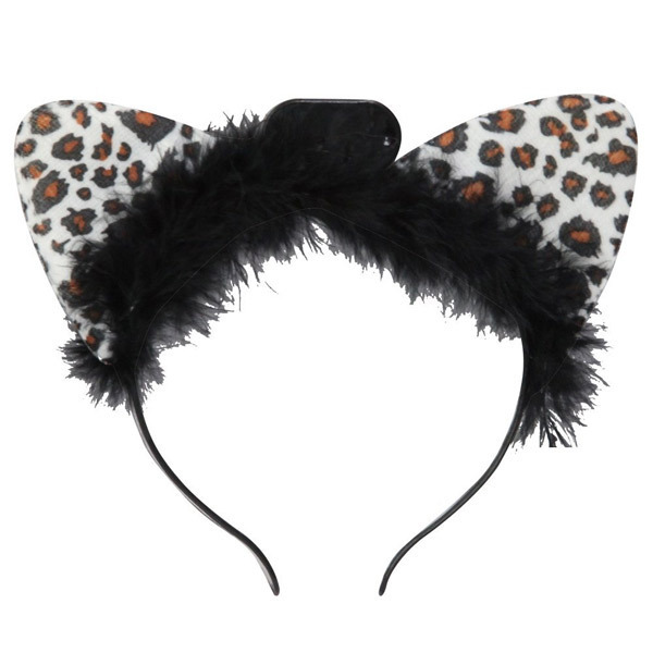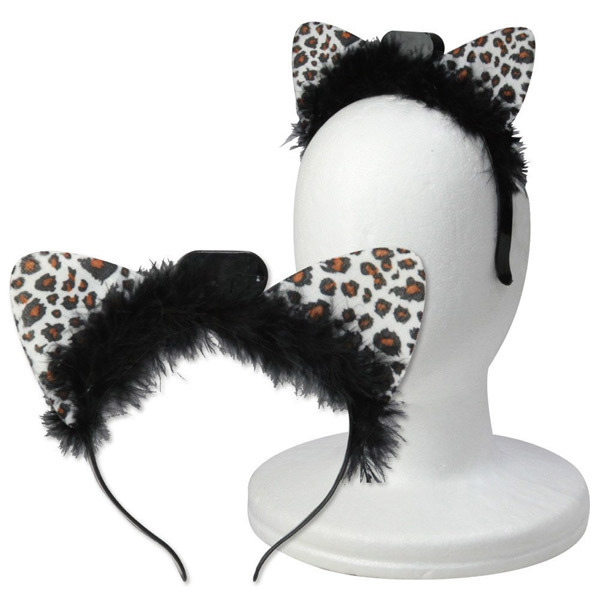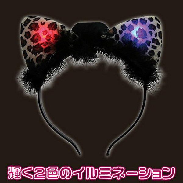 両耳がイルミネーションでピカピカ光る!ホワイトアニマル柄が可愛いネコ耳カチューシャ。