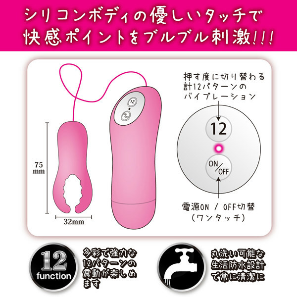 ボタンを押す度に切り替わる多彩で強力な計12パターンの振動機能を搭載!さらに敏感ポイントだけでなく、アームで男性器を挟んでの刺激も可能です。