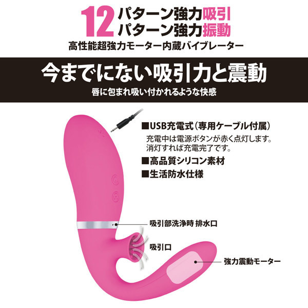 さらに、唇に吸い付かれるような刺激を生み出す吸引機能を搭載!強力な12パターンの吸引&振動を味わえます。
