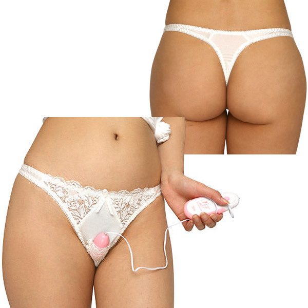 > トリコット&レース生地ローターポケット付きTバック ホワイト