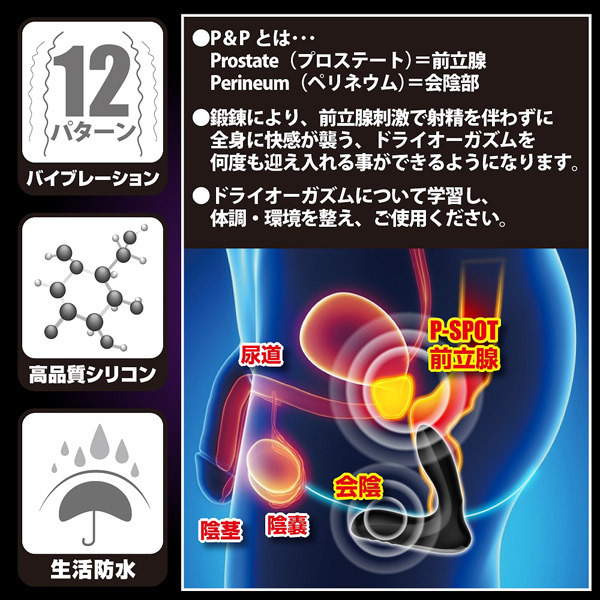 最大径約5cmまで自動で膨らむバルーン拡張機能を搭載!さらに、先端の高性能モーターによる12パターン振動で前立腺と会陰部を刺激します。