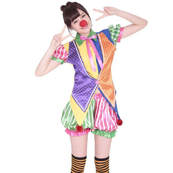 キュートな道化師に変身♪カラフルポップなピエロガールコスチューム。