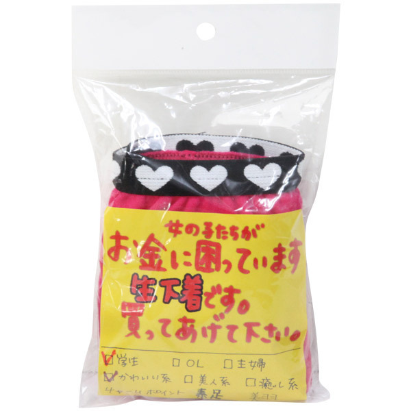 お金に困っている素人さんが持ち込んだパンティを、そのままパックしたかのようなリアル感!どんなデザインが届くかは到着してからのお楽しみ!ぜひ買い取ってあげて下さいね。