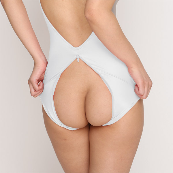 > ウェット生地 前後ダブルファスナーレオタード ホワイト
