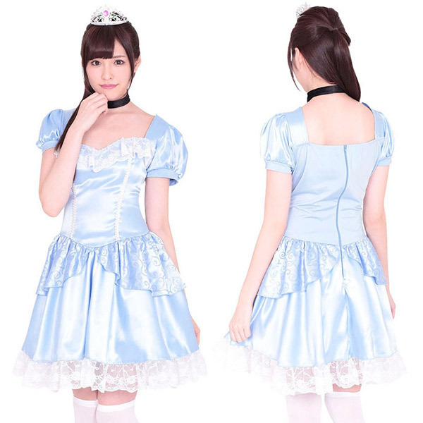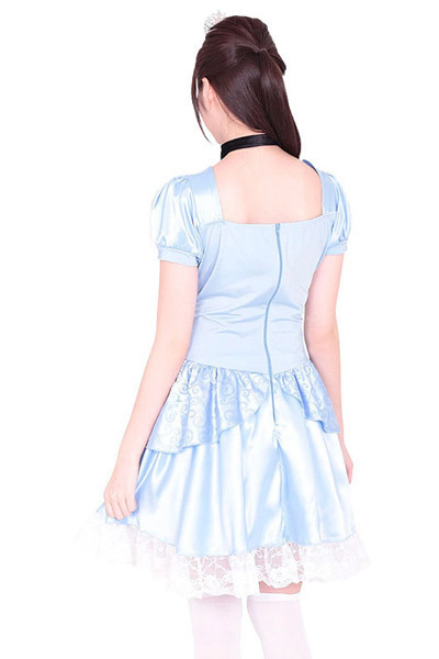 清楚な印象の水色ドレスワンピースに、装いをワンランクアップさせてくれるティアラと黒チョーカーもセット!裾のレース使いなどエレガントな大人可愛い魅力を引き出せるこだわり仕上げのコスプレ衣装です。
