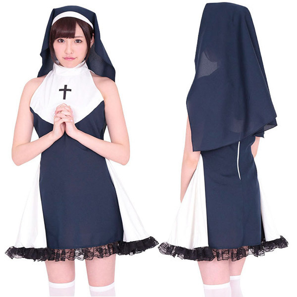 セクシーな修道女に変身♪ネイビー×白のバイカラーがオシャレなシスターコスチューム。