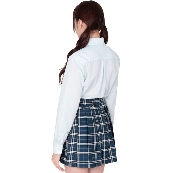 白シャツとは異なる魅力!パリッと着こなしたいサックスカラーの長袖ブラウス単品「本気で盛れる長袖シャツ ブルー」。