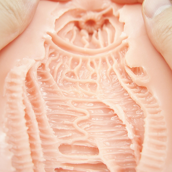 挿入すればマシュマロのように優しく包み込み、しっとりと身体へ吸い付いてきます♪さて、内部構造ですが、入った瞬間からびっしりとついた横ヒダとトルネードした縦ヒダが貴方の裏筋をゾリゾリと刺激。