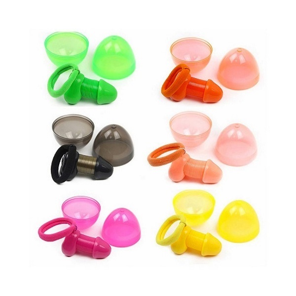 ヘアゴムにプラスチック素材のペニス型のアクセサリーがついていて、亀頭部分を引っ張ればスプリングのサオが伸びる仕様です♪隙間時間に遊ぶもいいですし、普通に身に着ければ彼へのセックスアピールにも!カラーは全部で6色。