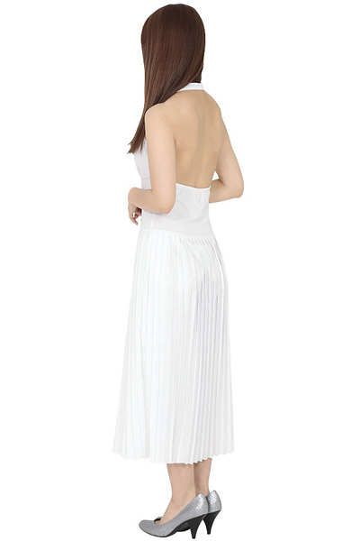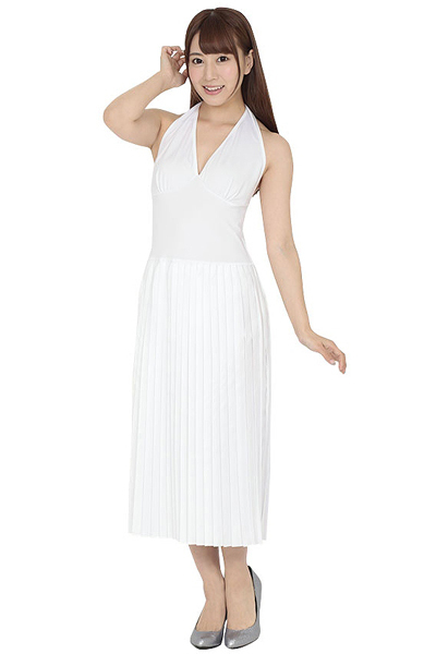 大胆にV字カットされた胸元と大きく開かれたバックスタイルは、20世紀最強とも言えるセックスシンボルにも引けをとらないセクシーさで貴方を輝かせる♪吹き上げる風を演出することでプリーツ多めのスカートがふんわりと優雅に広がり、あの名シーンが再現できちゃうかも!?お好みでタトゥーシールを貼って更なるハロウィン気分を味わうのも♪
