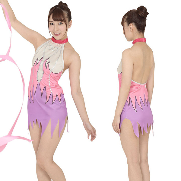 ギザギザにカットされた裾がスラリとした足をアピール!実際に新体操選手が着用するレオタードと同じくトップはハイネック仕様で、本格的なコスプレをお楽しみいただけます♪妖精のように優雅に舞って目指せオリンピック!