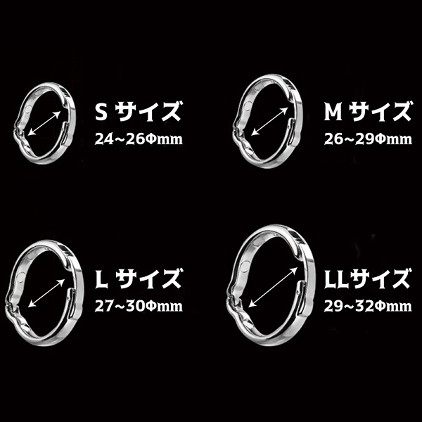 包茎や持続力など男性特有の悩みをサポートする男性補助アイテムならコチラ!内径およそ2.4cm〜2.6cm、洗練された美しいデザインでありながら磁石のパワーで血行を促したり包皮をまとめるなど、男性の自信を取り戻すべくしっかりと働いてくれるのがこのペニス増強グッズ。