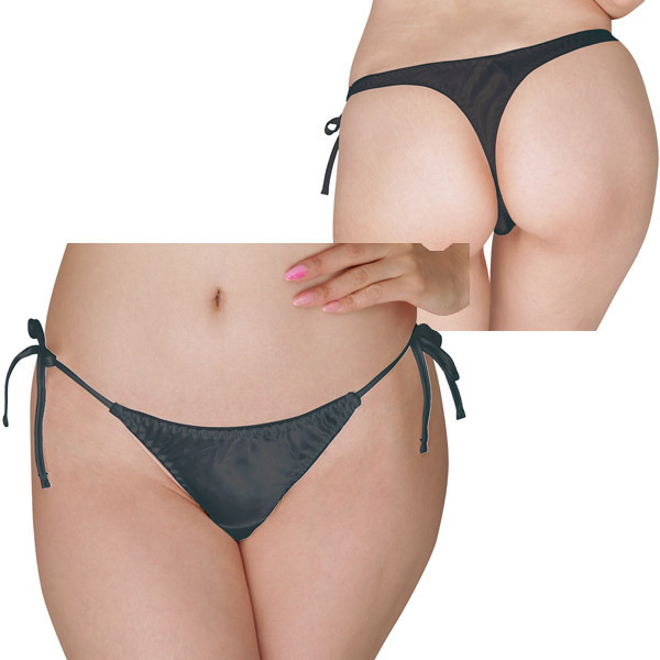 > 光沢サテン脇紐Tバック ブラック