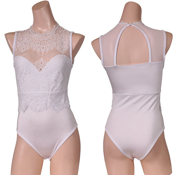 大人っぽく着れる純白レースレオタード