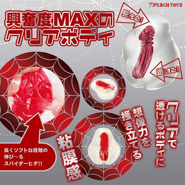 亀〇全体を包み込む横ヒダに、長い縦ヒダが絡みつき、ネット状のスパイダーヒダで縦横無尽に責め立てる!腰を少し動かすだけでもしっかり刺激!長期間S〇Xしてない蜘蛛の巣が張ったオンナノコの興奮を体験しよう!●興奮度MAXのクリアボディ●スタンダードは内部が粘膜カラーの2層構造●硬さは標準。