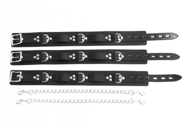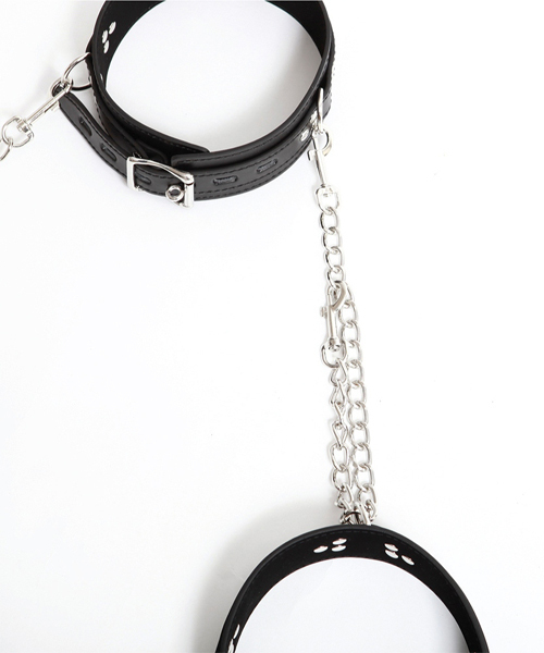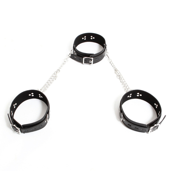 セット内容:首輪×1本、太ももベルト×2本、拘束チェーン×2本 素材:合皮、金具
