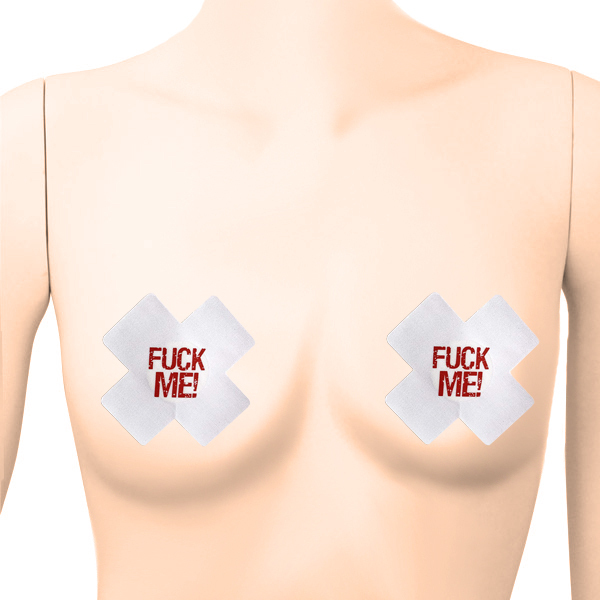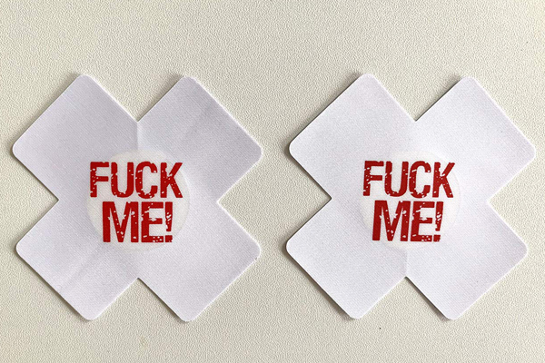 こんな風に主張されたらたまらない!「FUCK ME!」と大胆にアピールする2枚1セットのニップレス(白)。