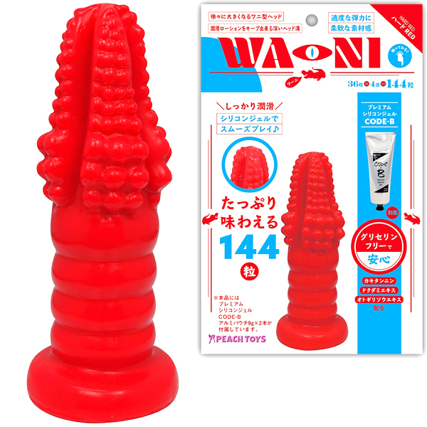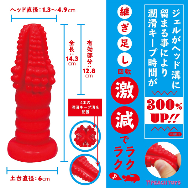 プレイ中、早く乾いてしまうといった悩みを改善すべく、先端部分にはローションが溜まる4つの深溝を配置!継ぎ足し回数を最小限に留めスムーズなプレイをサポートします♪先端から下にかけて太くなるワニ型ヘッドで、初心者から上級者の方まで幅広くお楽しみいただけます。