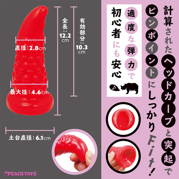 ツノを立てたように尖った先端と計算されたカーブデザインが奥をピンポイントに刺激!弾力と張りのある硬め素材が強烈な快感をもたらします♪