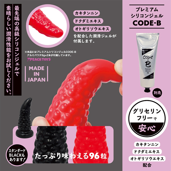 絶妙なカーブ形状が好きなポイントに適確にフィットする!96粒のイボ突起が付いた日本製ディルド。