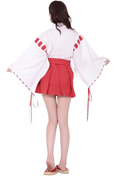 袴風ミニ丈スカートが可愛い!あの大人気コスプレ「夢のなかの巫女ちゃま」に大きめサイズが登場♪白い着物に赤のパイピングが印象的な和装コスプレ。