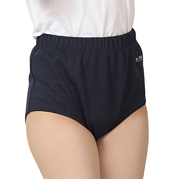 ウエストからお尻まですっぽり覆う本格的なハイカットブルマ(紺)。