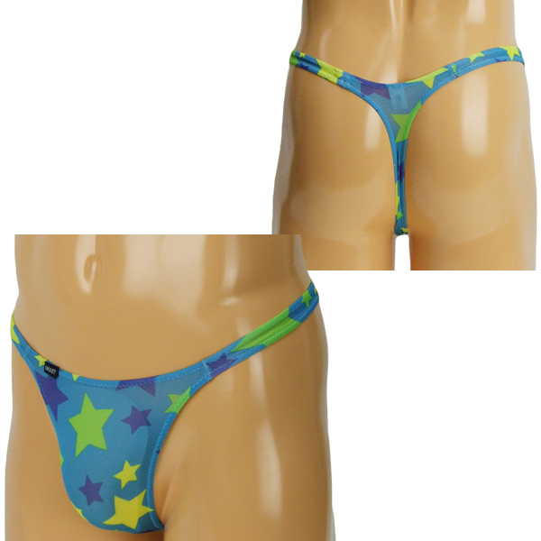 ポップなカラーリングと大きな星柄が目を惹く日本製のノーシームTバック(緑)。
