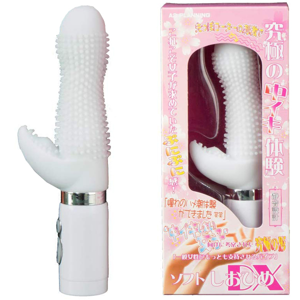 先端に内蔵されたローターが奥で激しく振動!中イキに特化したプニプニ質感の電池式バイブ(白)。