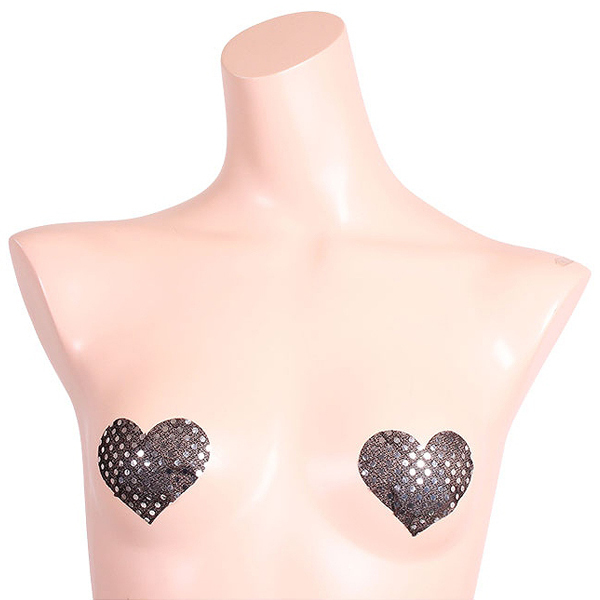 スパンコールで煌びやかに飾るハート型ニップレスシール2枚セット。