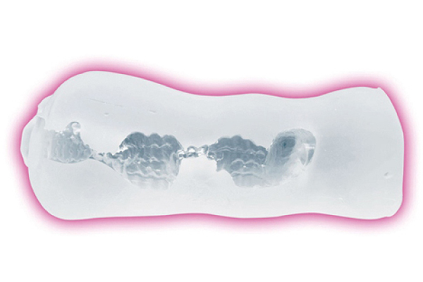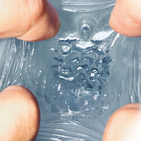 ミゾと突起を付けた2種類の横と縦の平面構造が交互に刺激!接合部分の狭い部分が締め付けてまた違った刺激!内部構造の一番奥にはポンプ機能を取り入れた空間が有り、吸引効果で吸い付きます。