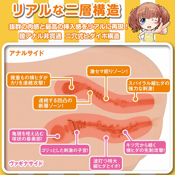 また、人肌のように滑らかなDNAシルクスキン2を採用!内部は肉感&挿入感抜群の二穴式ヒダイボ構造♪見ても使っても楽しめるような仕上がりとなっています。