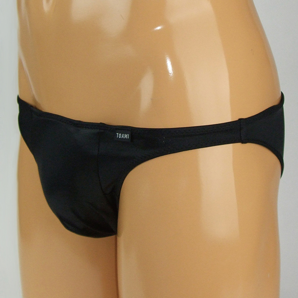 > メンズ 光沢ストレッチ生地玉袋付きフルバック Lブラック