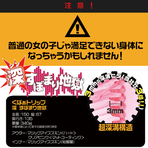 実用性に特化した「くぱぁトリップ」シリーズの新作!奥へ進むほど狭まる3mm深溝ヒダ構造の高刺激な非貫通オナホ。