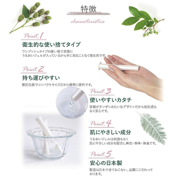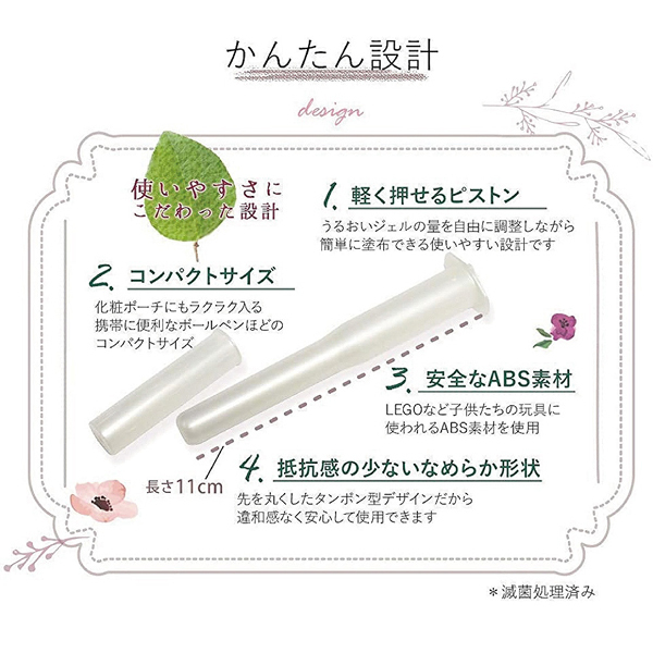 キャップ付きの注射器型で直接触れずに局部へワンプッシュするだけで塗布できるから衛生的!ヒアルロン酸やコラーゲンなどの美容保湿成分配合で自然な潤いが長く続きます。