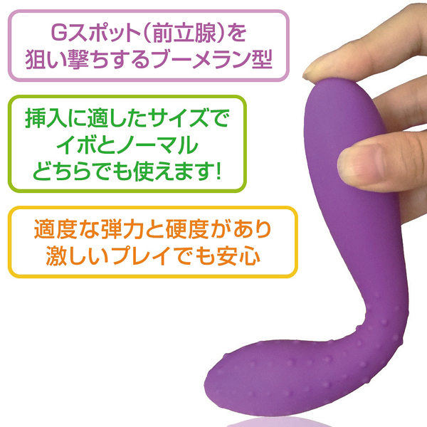 全長19.5cm、最大幅は3.5cmと適度なサイズ感で、素材は温かみがあり柔らかい高品質なシリコン仕様で肌に優しい設計!Gスポ&前立腺を狙い撃つブーメラン型。