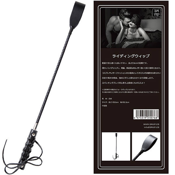 軽量で扱いやすく、四つん這いで乗っかられながらのプレイに最適な乗馬鞭です♪打面の素材はフェイクレザーでグリップ部はレースアップ。