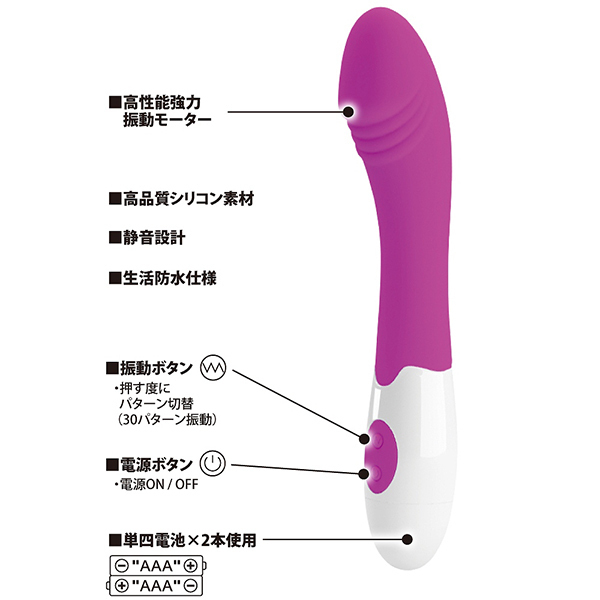 充電が面倒な方でも安心の単4電池2本で駆動するタイプ♪ストレート型で奥までどんどん突けて、30種類もの豊富なバリエーションパターンを搭載した嬉しいバイブです。