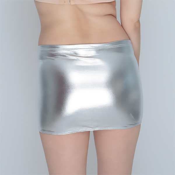 ミニ丈で光沢感があり、照明の当たり具合でキラキラとしてとれも綺麗です♪こちらはシルバーのメタルカラーでピカピカとしていて雰囲気も抜群!マンネリ気味や気分を変えたいときにもどうぞ。